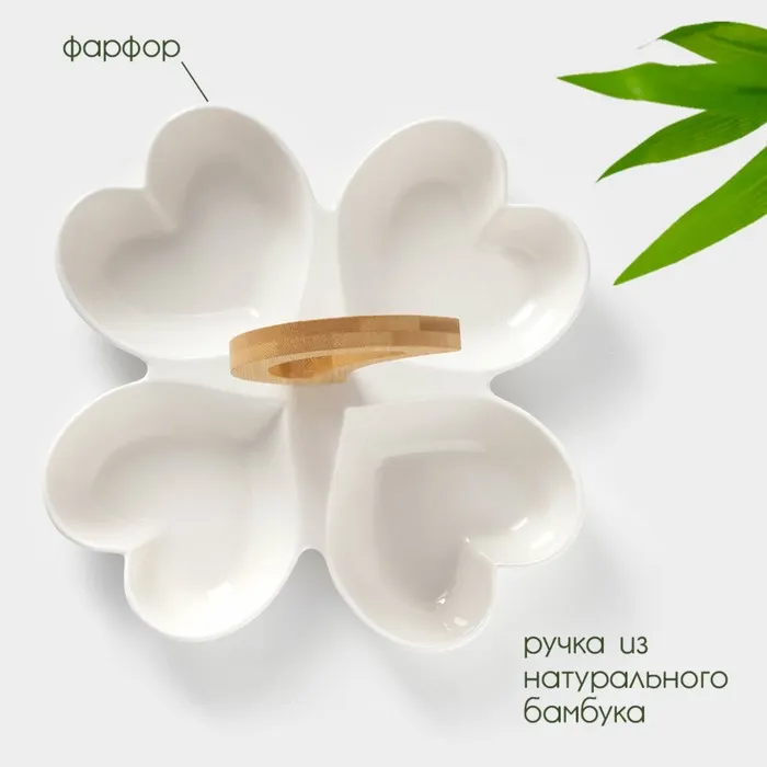 Менажница BellaTenero изготовлена из качественного фарфора. Благодаря оригинальному дизайну, изделие легко украсит вашу кухню, а также прекрасно подойдёт в качестве подарка. Посуда выполнена в светлых тонах, что позволит вписать её практически в любой интерьер. Фарфоровая менажница послужит отличной альтернативой деревянной менажнице.