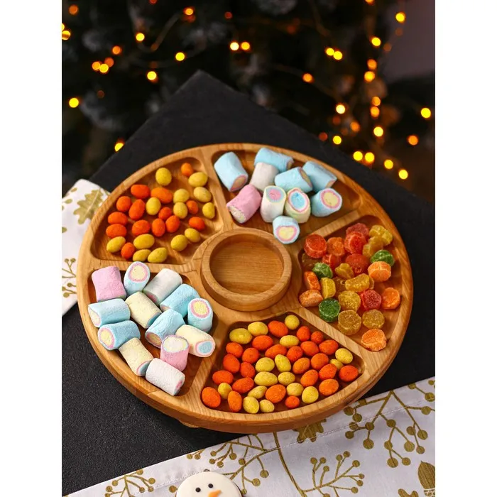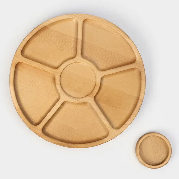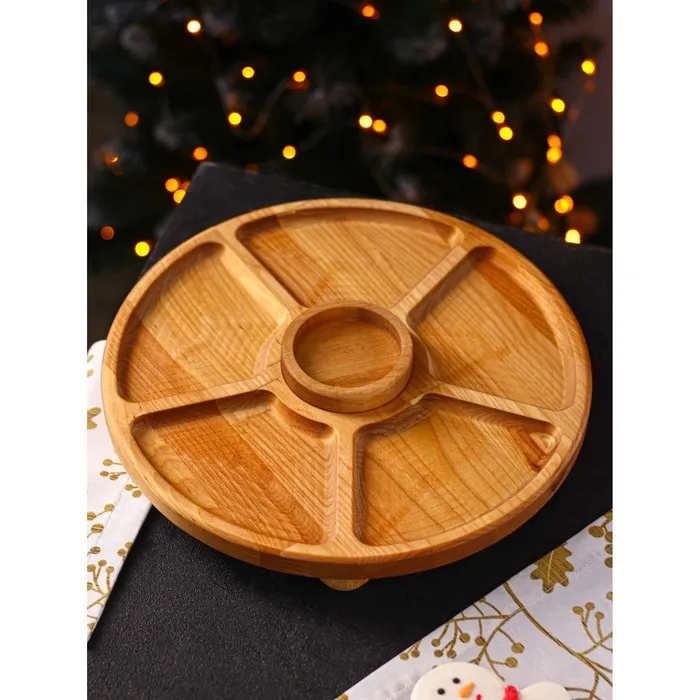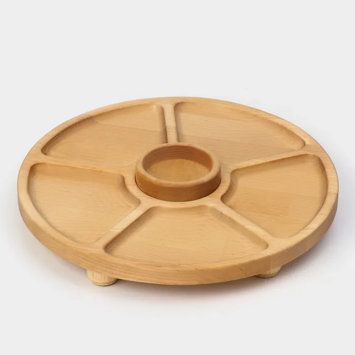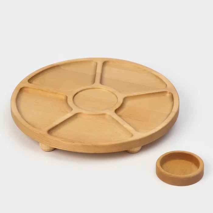 Менажница деревянная Adelica «Фортуна», на ножках с соусницей, d=30 см, 70 мл, берёза — Характеристики