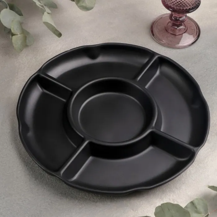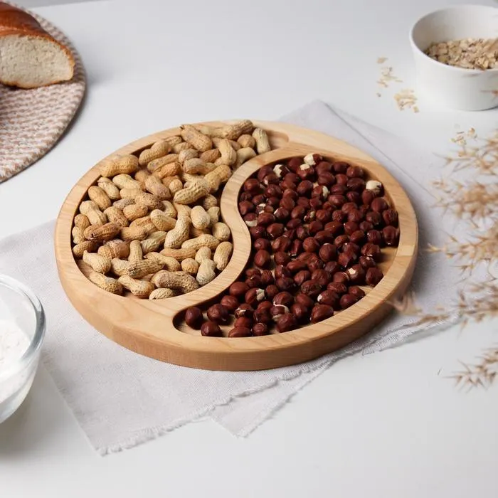 Деревянная менажница имеет свой уникальный стиль и красоту. Она изготовлена из натурального дерева, что придает ей шарм и теплоту.
