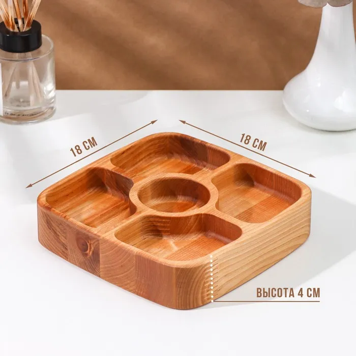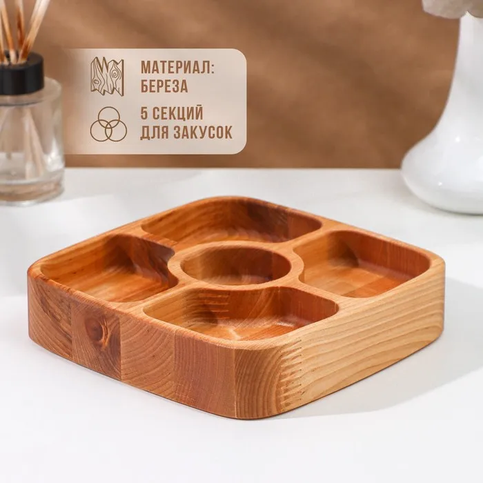 Менажница деревянная глубокая Adelica, 5 секций, береза, 18×18×4 см — Характеристики