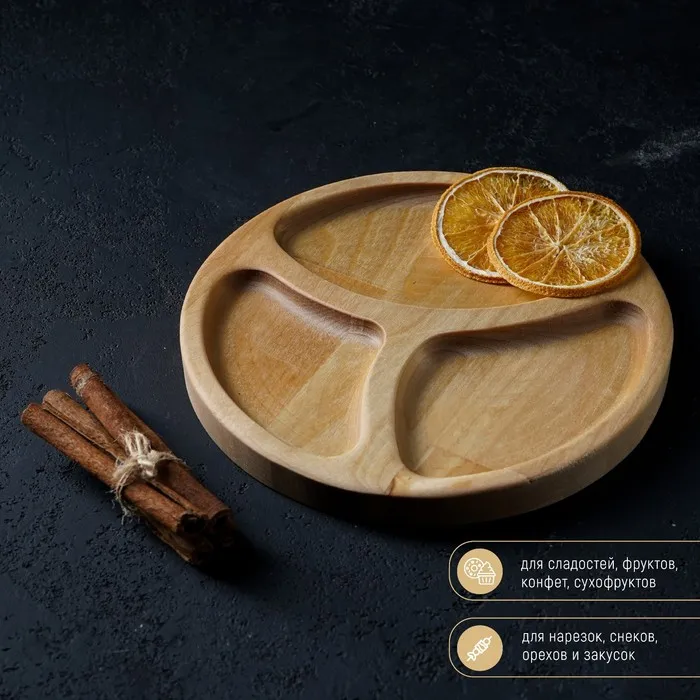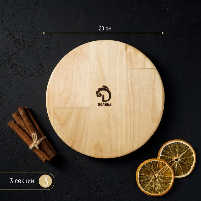 Менажница деревянная круглая Доляна «Валенсия», d=20 см, 3 секции, берёза, пропитана маслом — Характеристики