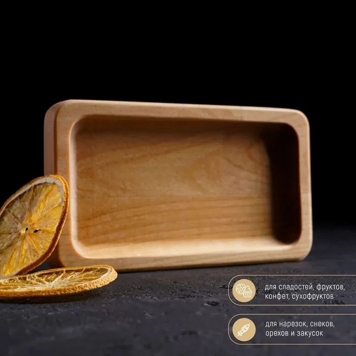 Менажница деревянная прямоугольная Доляна, 18×10 см, 1 секция, берёза, пропитана маслом — Характеристики