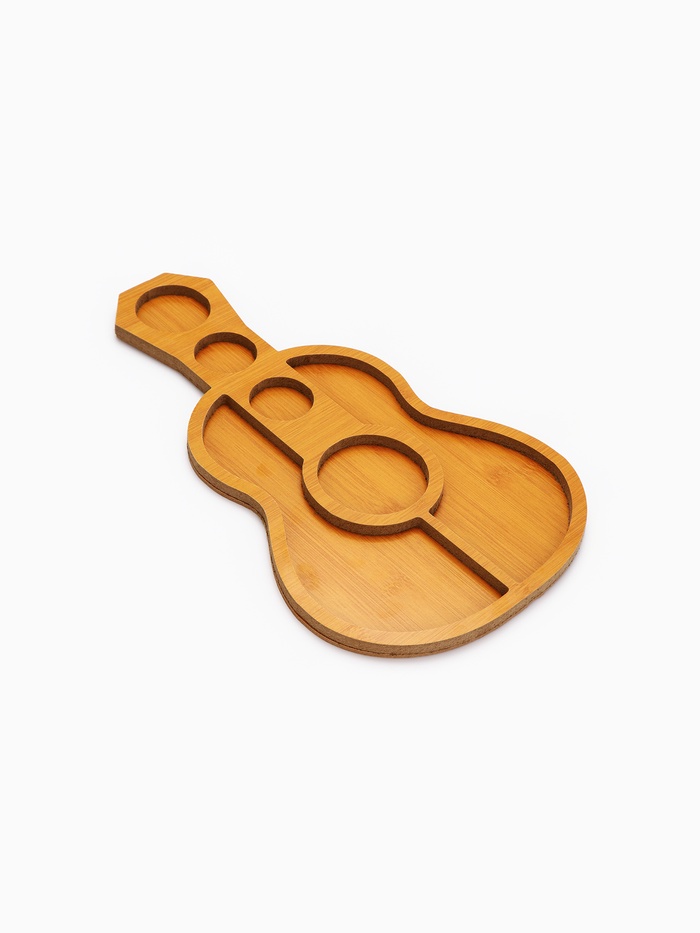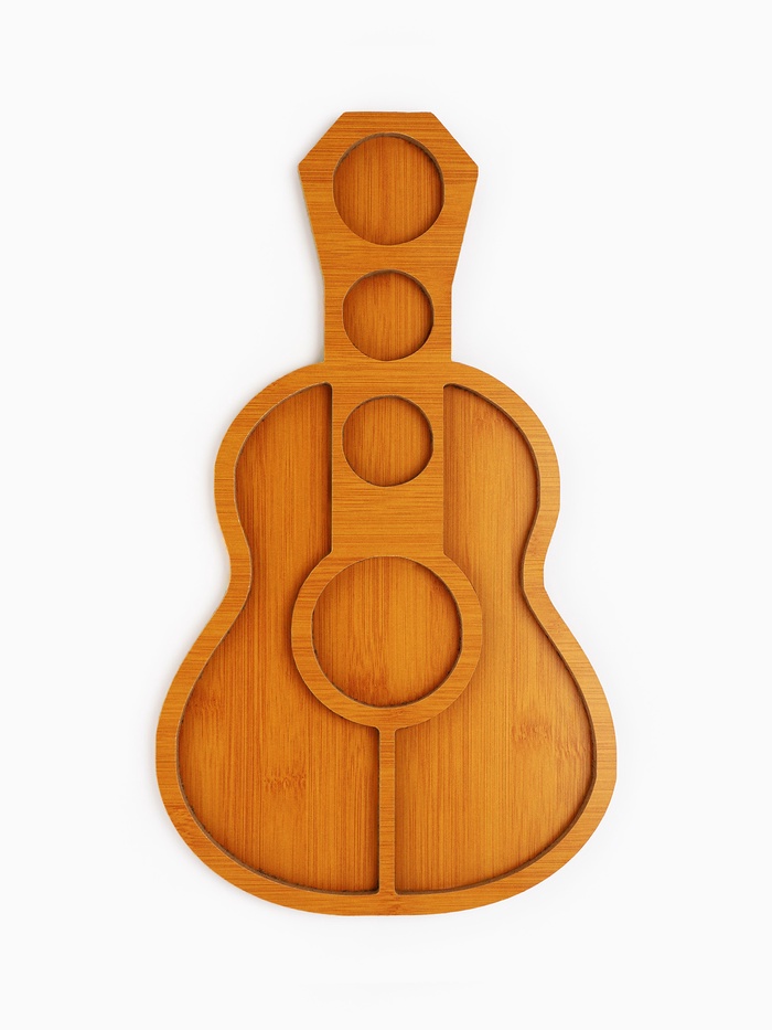 Менажница «Для закусок» — это не просто посуда, а лёгкий намёк на настроение вечера. Её силуэт повторяет музыкальный инструмент, корпус из ДСП имитирует тёплую текстуру дерева, а яркая крышка добавляет игривости без излишеств. В ней 6 секций — потому что иногда идея не требует усложнений: просто вино, закуска и компания, готовая к разговору без спешки.