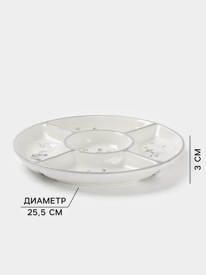 Менажница Доляна «Гуси», 5 ячеек, d=25.5 см, доломит, белая — Характеристики