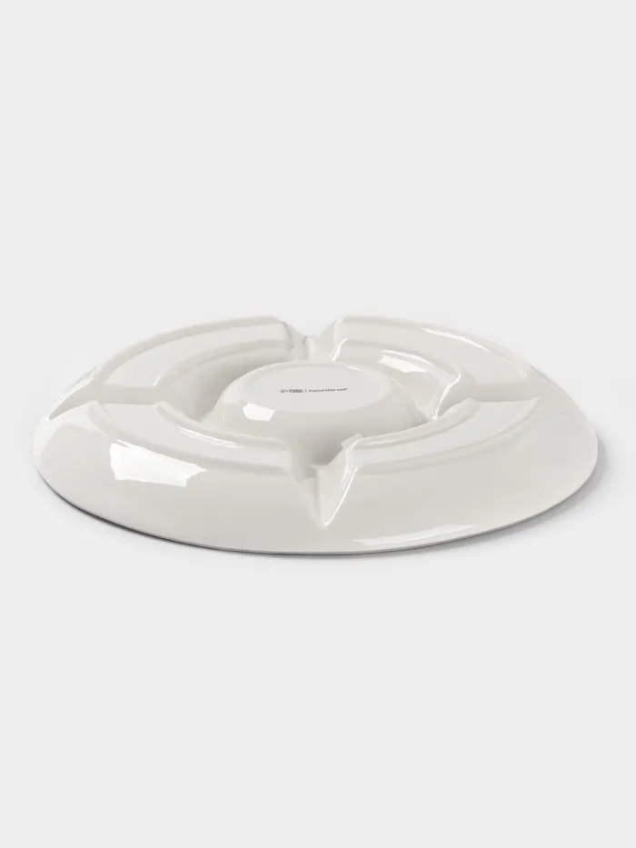 Прекрасная менажница, выполненная из доломита с очаровательным рисунком гусей. Она разделена на 5 удобных секций. Подходит для сервировки различных закусок, соусов, оливок и прочих аппетитных мелочей. Диаметр 25.5 см.