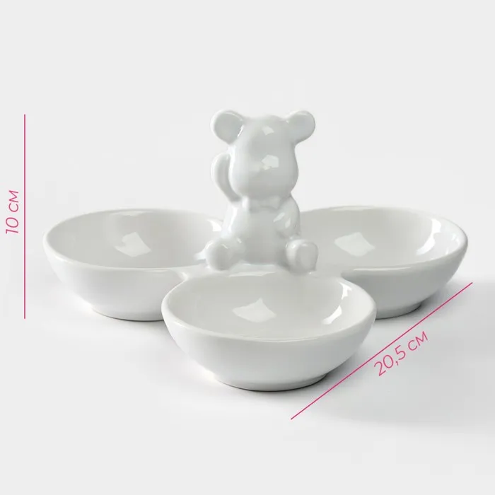 Менажница Доляна «Мишка Отто», 20.5×10 см, 3 ячейки, доломит, белая — Характеристики