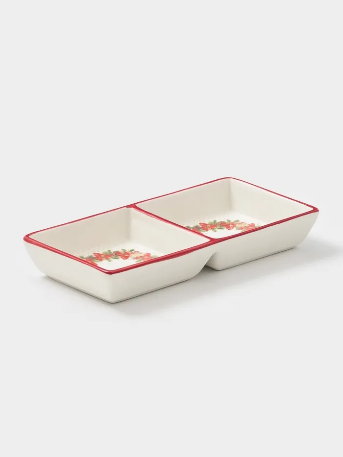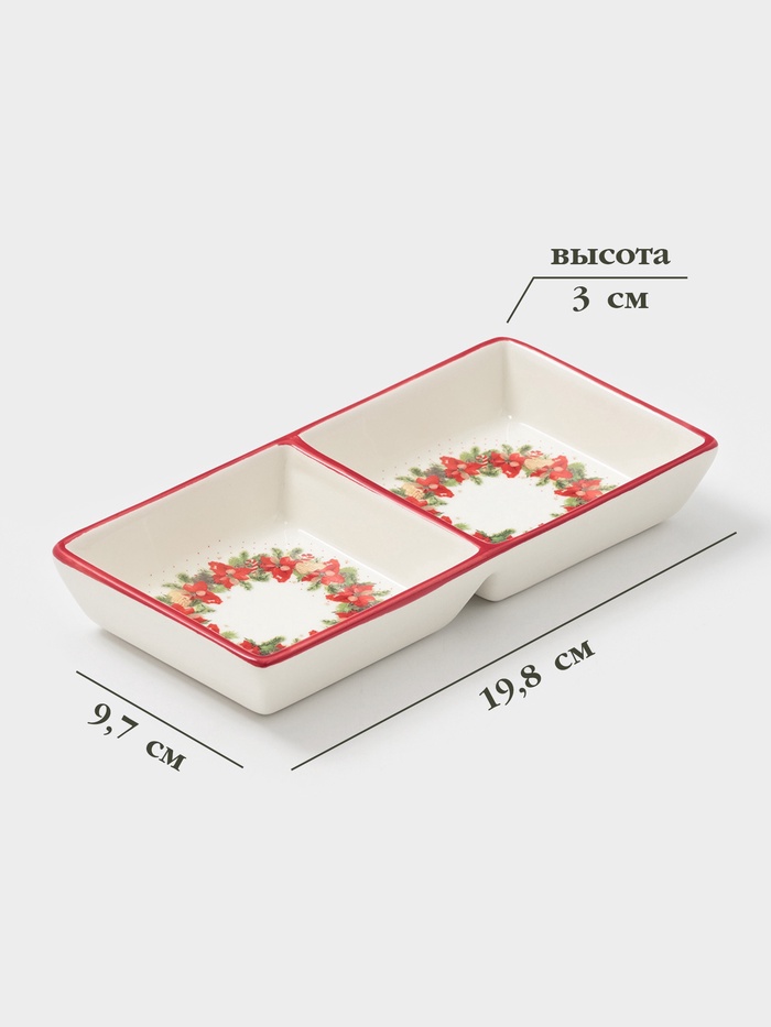 Менажница Доляна «Новогоднее настроение», 2 секций, 19.8×3 см, доломит, белая — Характеристики