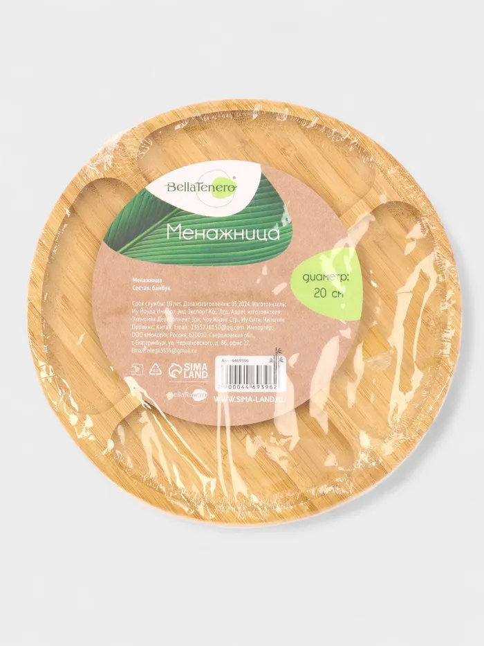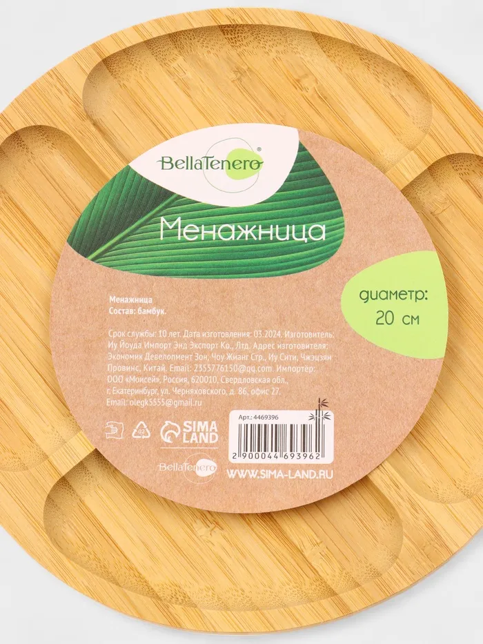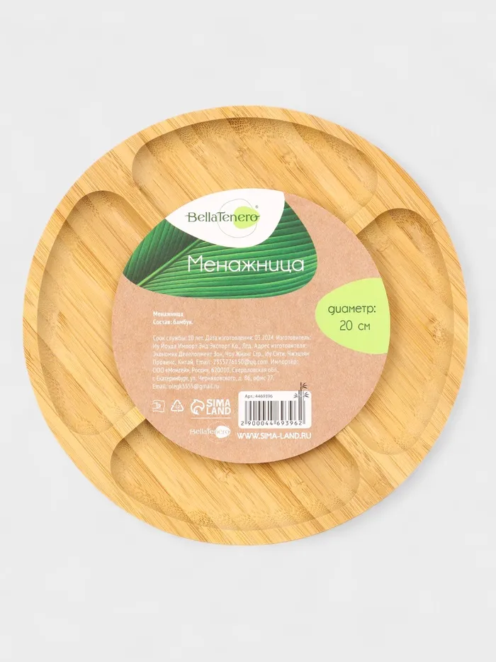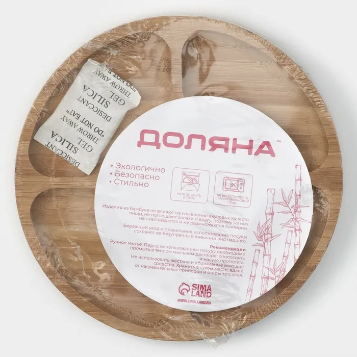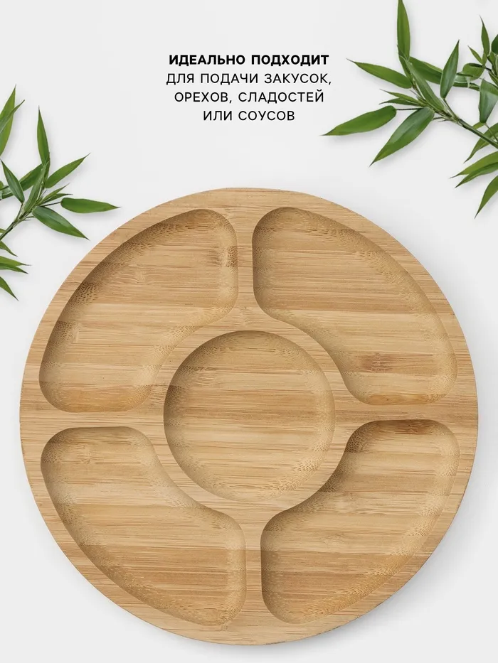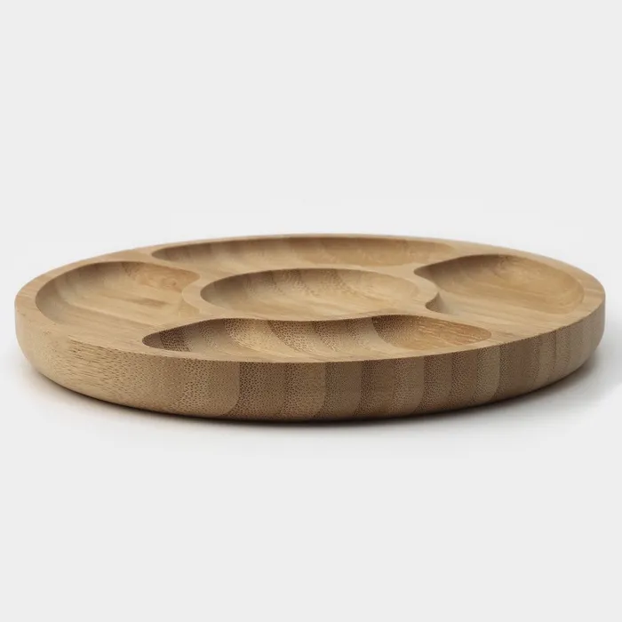 Менажница Доляна Striata, d=19.5 см, 5 секций, бамбук, бежевая — Характеристики