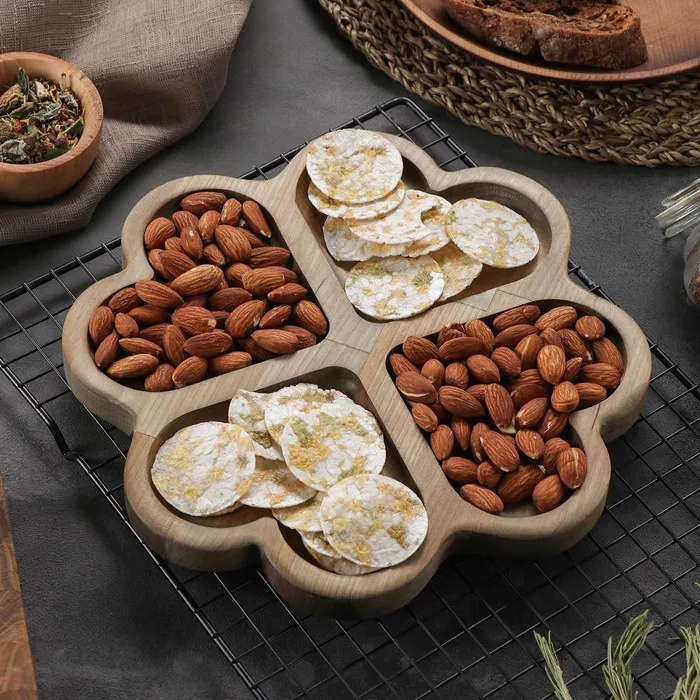 Никак не можете отучить себя от вредных перекусов? Изящная менажница из натурального дерева не даст вам пройти мимо орешков и сухофруктов. Изделие станет стильным и уютным элементом вашей кухни и незаменимым аксессуаром для сервировки стола.