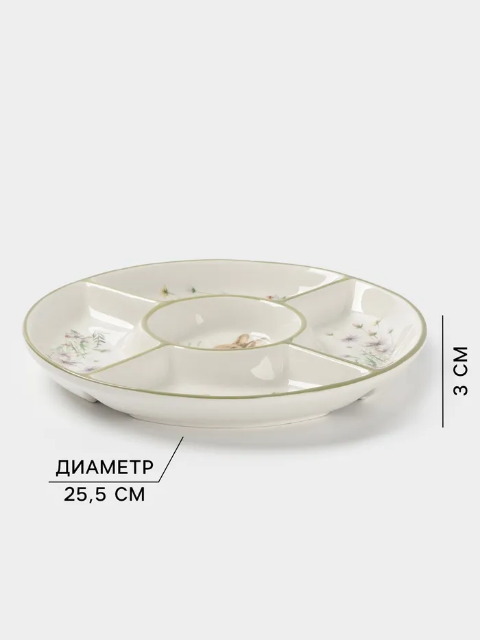 Менажница Доляна «Зайка», 5 ячеек, d=25.5 см, доломит, белая — Характеристики
