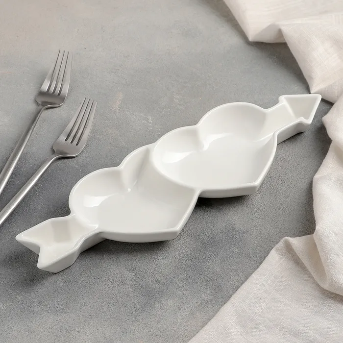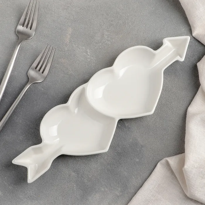 Менажница керамическая 2 ячейки «Влюблённые сердца», 31×10×2,5 см — Характеристики