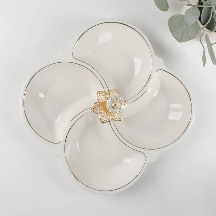 Менажница керамическая 4 ячейки «Богема», 25,5×4 см, цвет белый — Характеристики