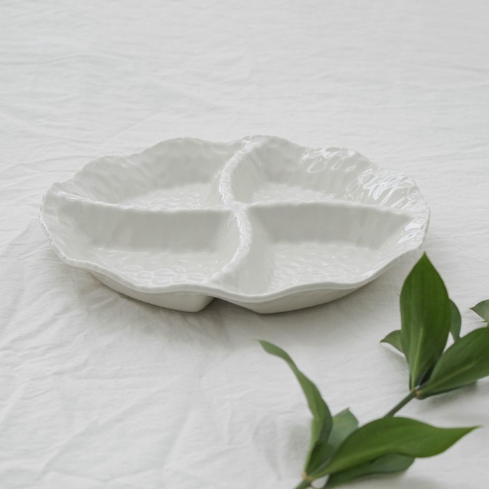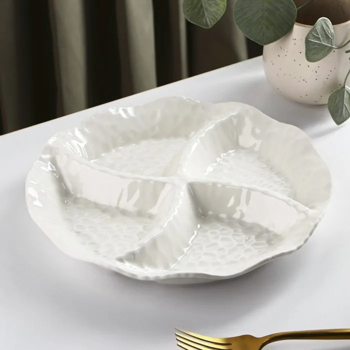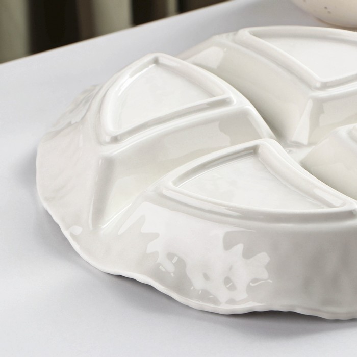 Менажница керамическая 4 ячейки «Воздушность», 24×3,5 см, цвет белый — Характеристики