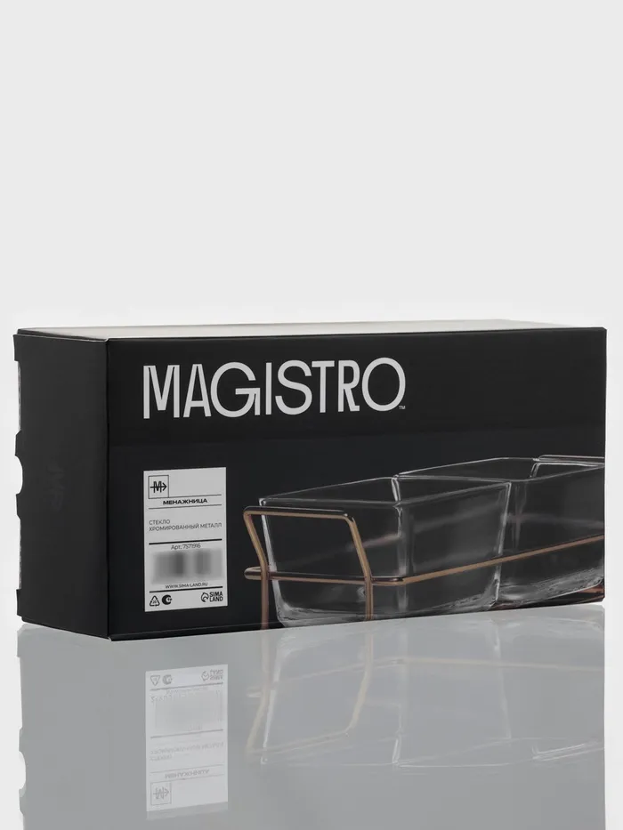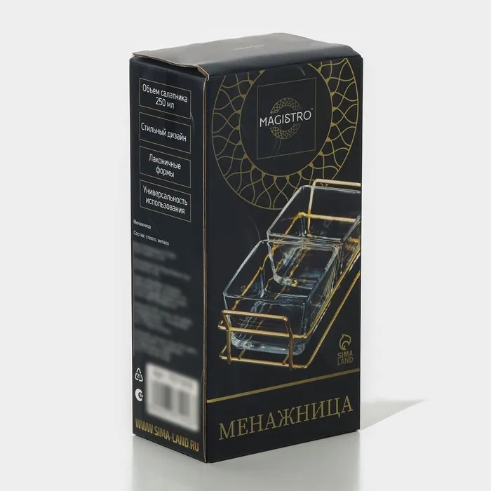 Менажница позволит вам разместить сразу несколько блюд, предназначена для сервировки стола, а также подойдет под любой интерьер. Имеет 2 секции, изготовлена из высокопрочного стекла. Менажница прекрасно подходит для подачи сыра и фруктов и благодаря необычному дизайну украсит любой стол.