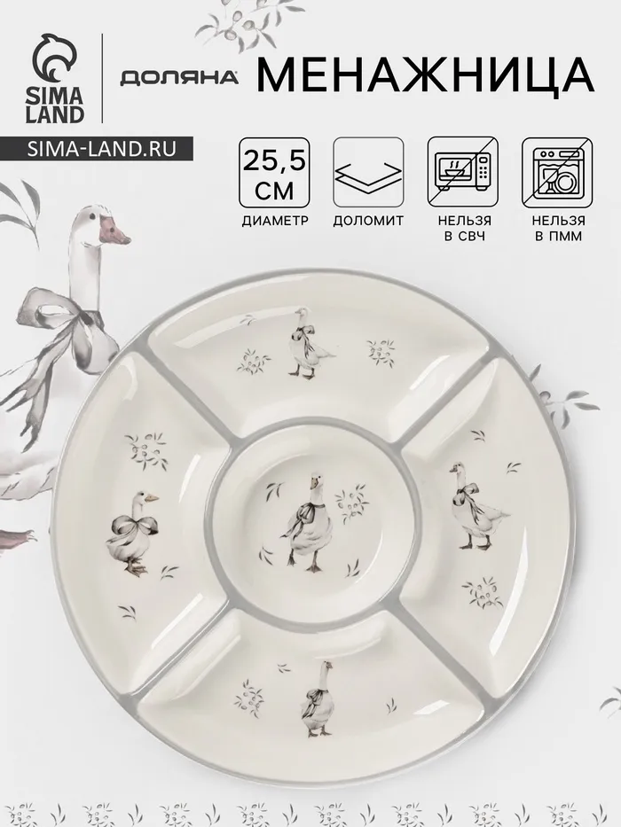 Сервировка стола с «Новогодней Менажницей» дарит незабываемую атмосферу и объединяет гостей вокруг прекрасных праздничных блюд. Это не просто посуда — это истинный символ комфорта, где каждая секция словно приглашение на волшебное угощение. Наполните ваш праздник стильной элегантностью и заботой.