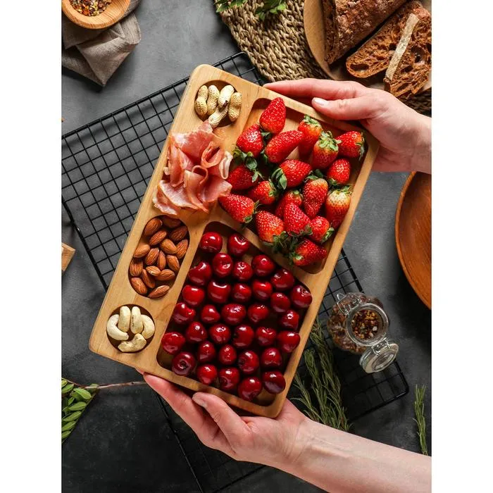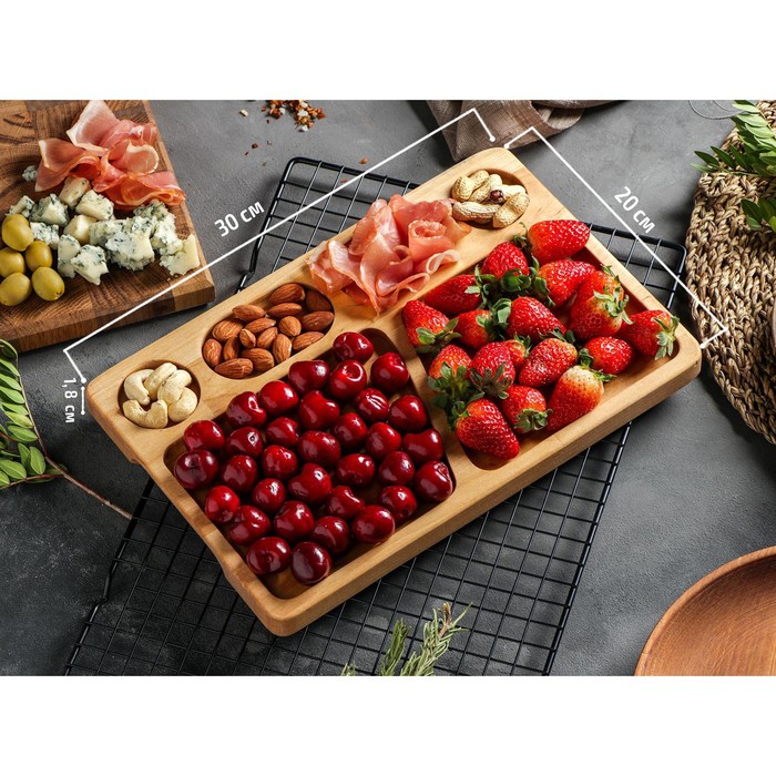 Менажница прямоугольная Доляна, 30×20×1.8 см, 6 секций, дерево берёза — Характеристики