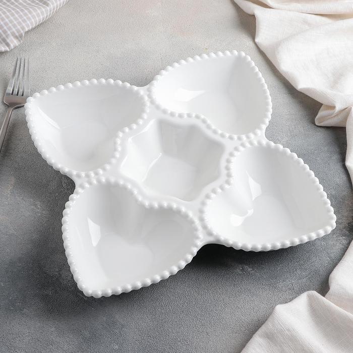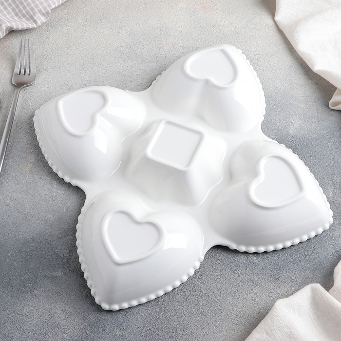 Менажница «Сердца», 5 секций, 25×5 см, керамика, белая — Характеристики