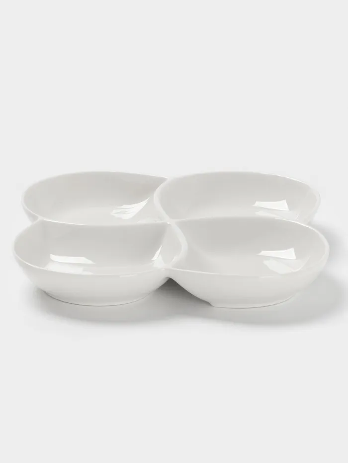 Эта менажница подойдёт не только как романтический акцент, но и как практичный элемент повседневной подачи: для оливок и маслин, соусов к грилю, специй или мини-десертов. Белая керамика не отвлекает от еды, а форма сердца добавляет лёгкую эмоциональную ноту — без пафоса, но с характером.