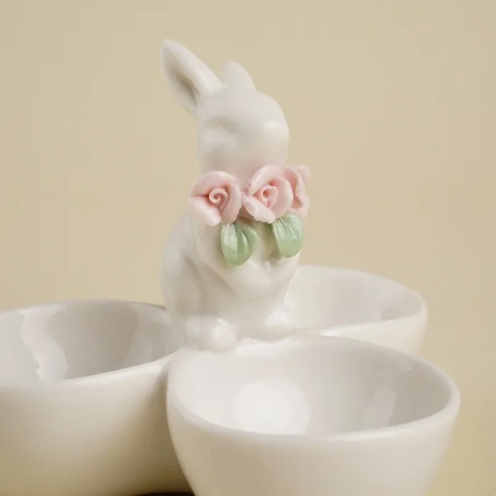 - Непревзойденный дизайн: очаровательный кролик в центре менажницы привносит элемент игривости и радости в каждое застолье.