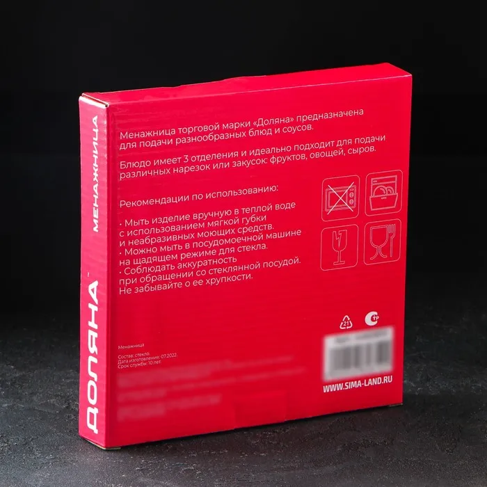 Менажница стеклянная круглая «Северная звезда», 3 секции, d=20 см — Характеристики