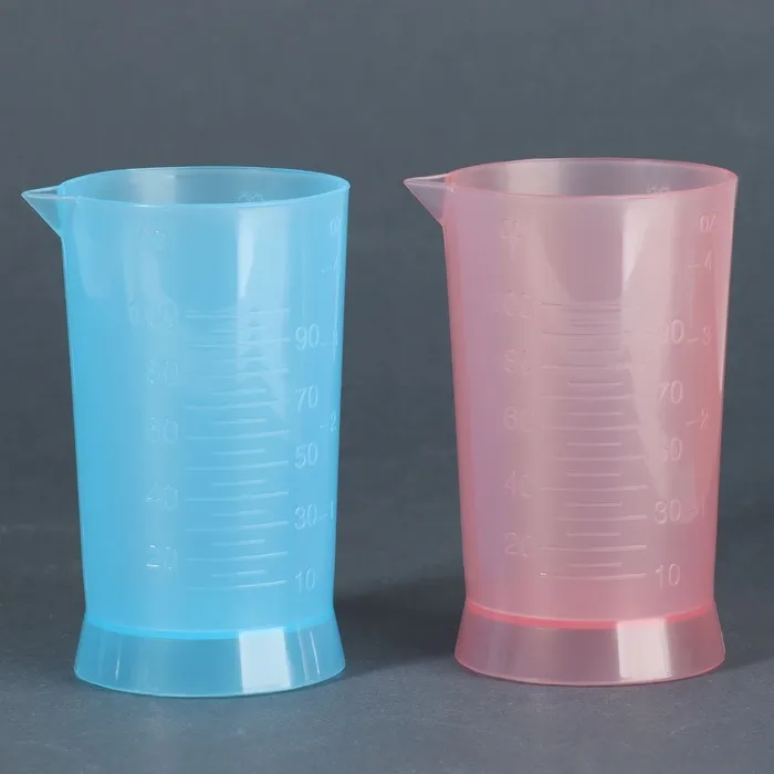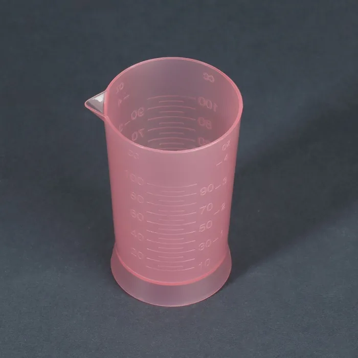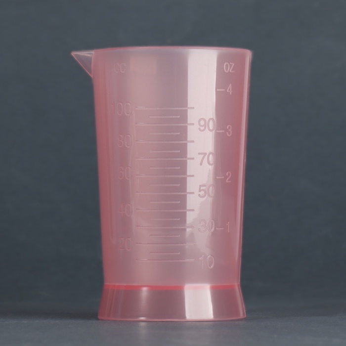 Стакан из пластика поможет замерить необходимое количество краски, масок или других косметических составов. Шкалу хорошо видно, а благодаря прозрачным стенкам вы точно определите необходимый объём.