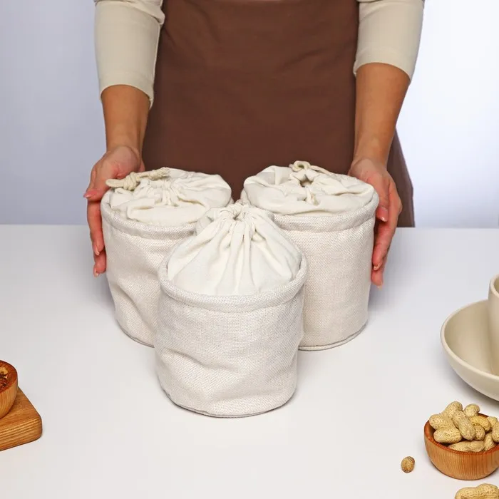 - Экологичность: Изготовлены из натурального льна, что делает их безопасными для хранения продуктов.