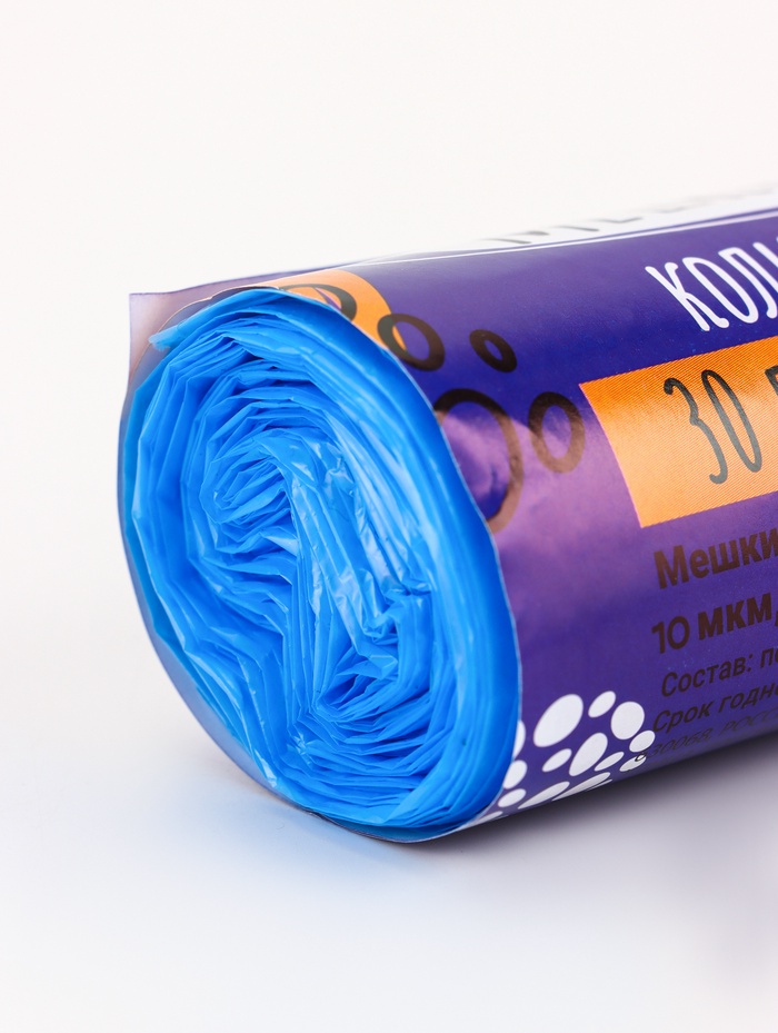 - Универсальное применение: Синий цвет помогает отличать пакеты для разных типов отходов. Полиэтилен низкого давления сохраняет форму при наполнении.