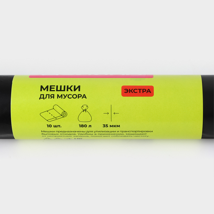 Мешки для мусора Доляна «Экстра», 180 л, 35 мкм, 90×108 см, ПВД, 10 шт., чёрные — Характеристики