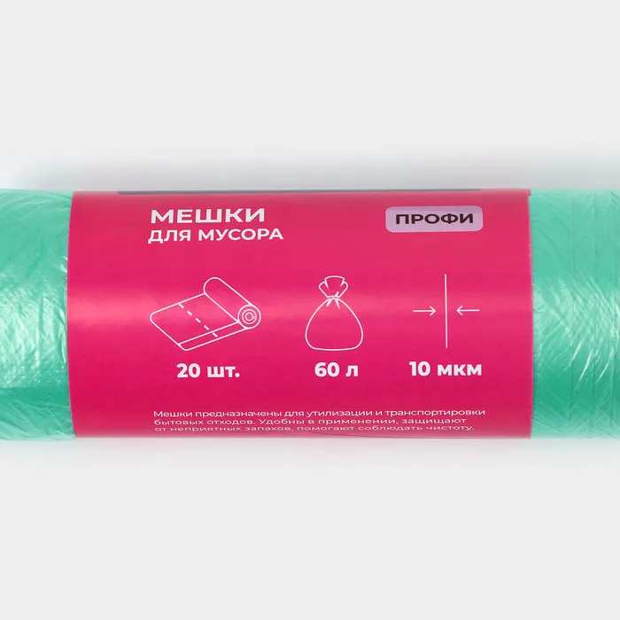 Мешки для мусора Доляна «Профи», 60 л, 58×80 см, 10 мкм, ПНД, 20 шт., зелёные — Характеристики
