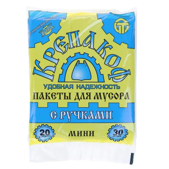 Мешки для мусора «Крепакоф», 20 л, с ручками, ПНД, 9 мкм, 41×54 см, 30 шт., чёрные — Характеристики