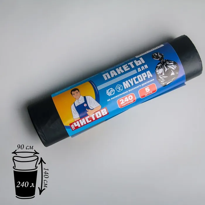 Надёжное решение для крупногабаритного мусора! Мусорные мешки 240 литров — прочные пакеты для строительных отходов, листвы и других объёмных отходов. Плотный материал выдерживает значительный вес без разрывов.