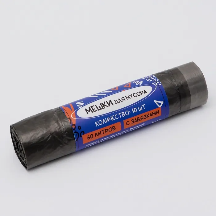 Мешки для мусора в рулоне UpakLand с завязками 60 л 16 мкм черные 10 шт. — Характеристики