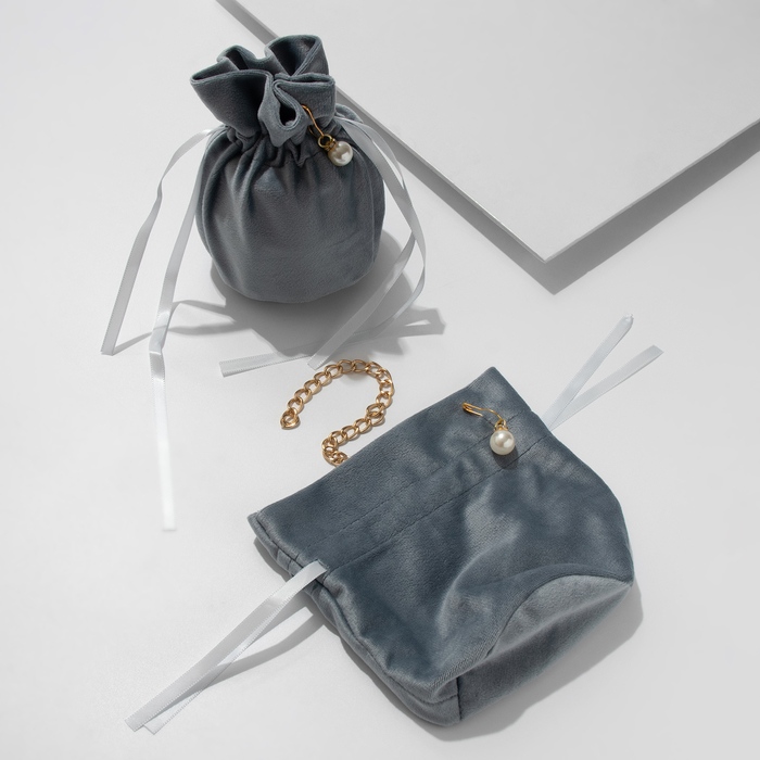 Мешочек бархатный с бусиной, 13×15 см, серый — Характеристики