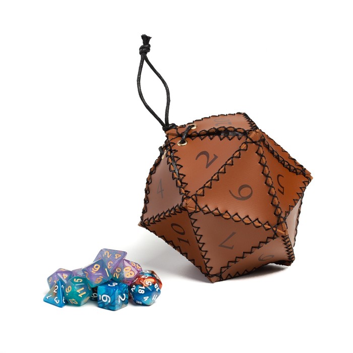 Мешочек многогранной формы для игральных костей или дайсов изготовлен из качественной и прочной экокожи, что обеспечивает его долговечность и стильный внешний вид. Шнурок на горловине мешочка позволяет легко доставать и убирать кости, а также предотвращает их потерю. Многогранная форма позволяет хранить в мешочке кости различных размеров и форм. Идеальный выбор для любителей настольных ролевых игр и коллекционеров аксессуаров, этот мешочек станет незаменимым помощником для хранения и безопасной транспортировки ваших дайсов.