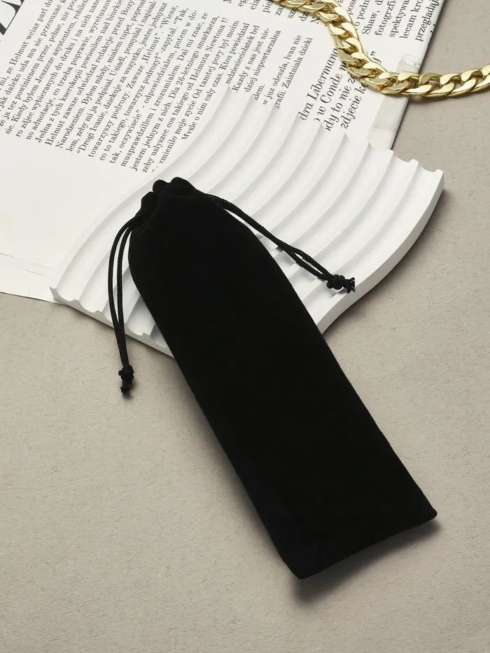 Маленький подарочный мешочек из бархата черного цвета — это универсальный аксессуар для упаковки подарков. Размер 18×6 см делает его подходящим для небольших сувениров, украшений или косметики, создавая аккуратную и элегантную презентацию.
