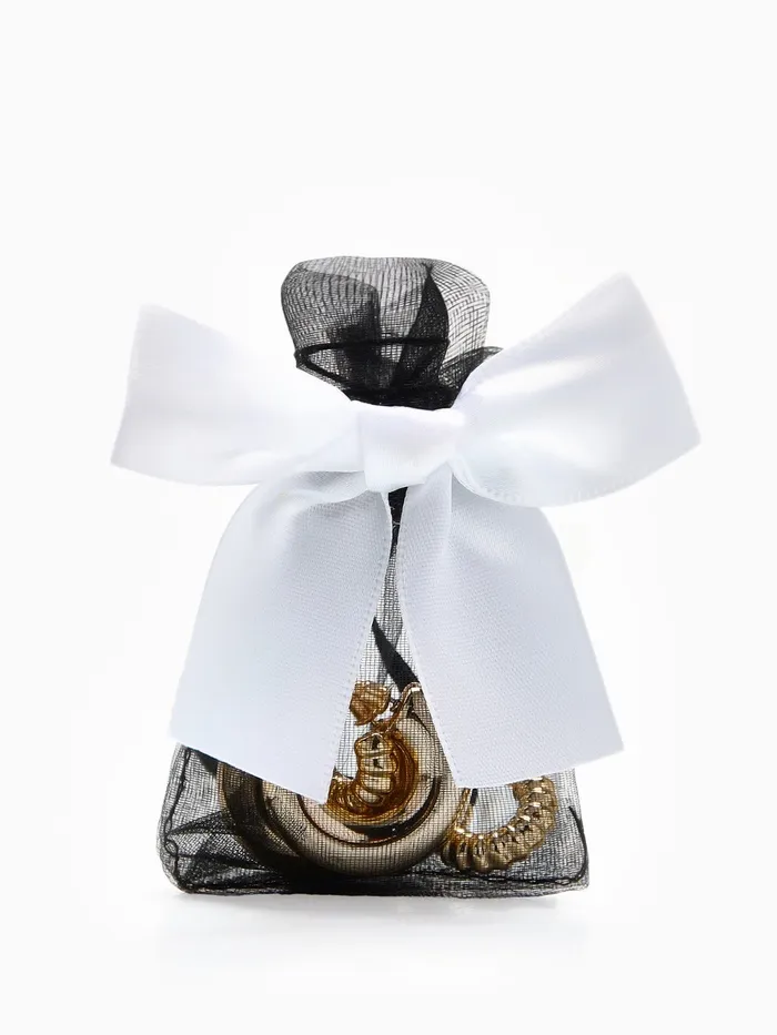 Откройте для себя стильный и универсальный аксессуар, который придаст вашим подаркам особую изюминку! Этот мешочек выполнен из качественной органзы в элегантной черно-белой гамме, что делает его идеальным выбором для упаковки подарков на любые торжества. Размер 7×9 см отлично подходит для хранения брошек, колец, серег и других мелких сюрпризов.