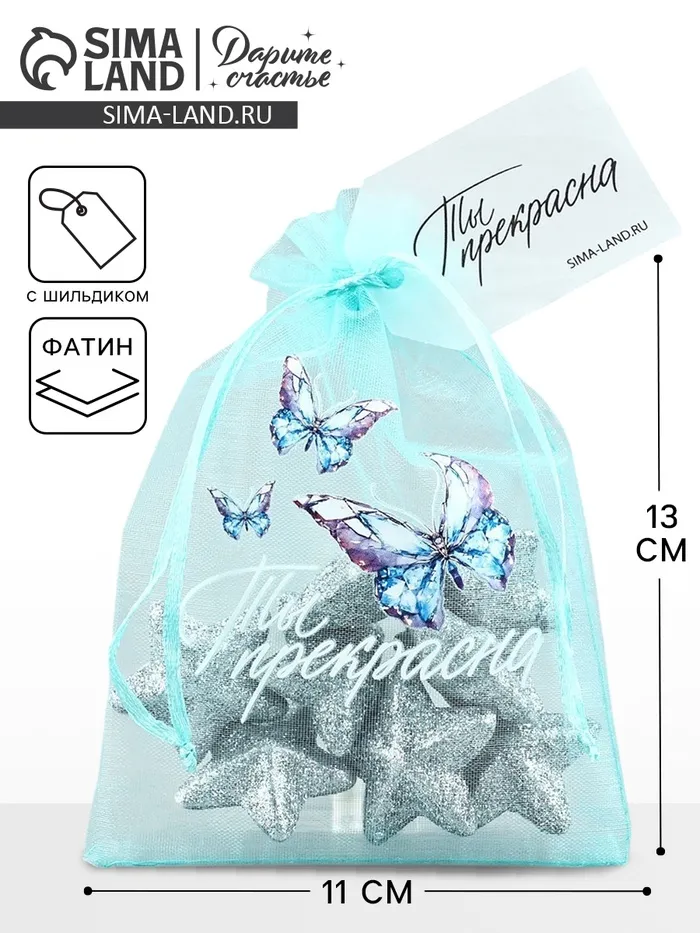 Мешочек подарочный из фатина с термонаклейкой «Ты прекрасна», 11 х 16 см +/- 1.5 см — Характеристики
