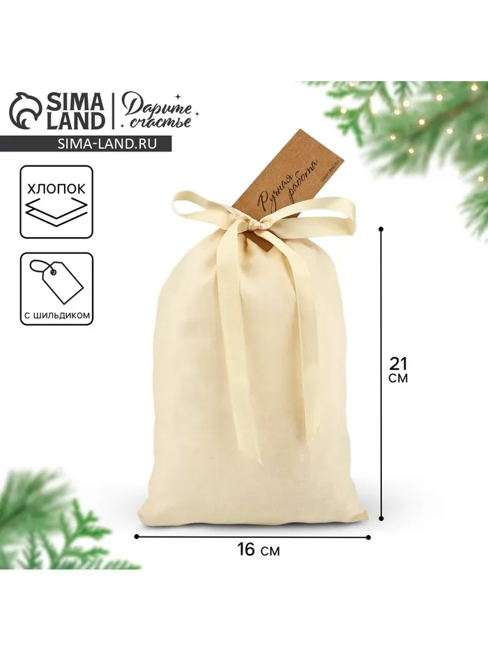 Мешочек подарочный из хлопка «Ручная работа», 16 х 24 см +/- 1.5 см — Характеристики