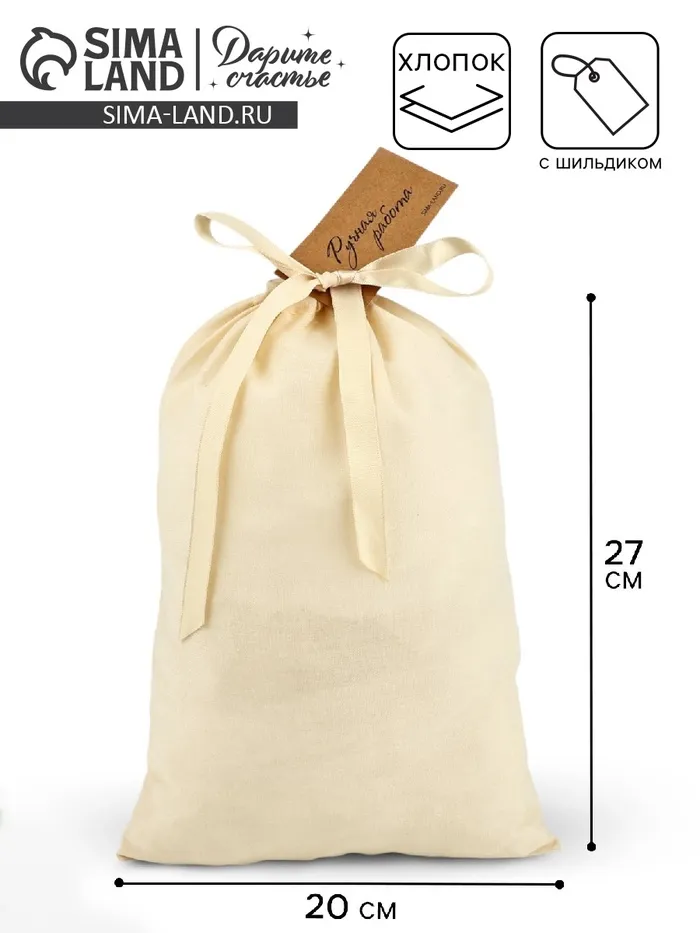 Мешочек подарочный из хлопка «Ручная работа», 20 х 30 см +/- 1.5 см — Характеристики