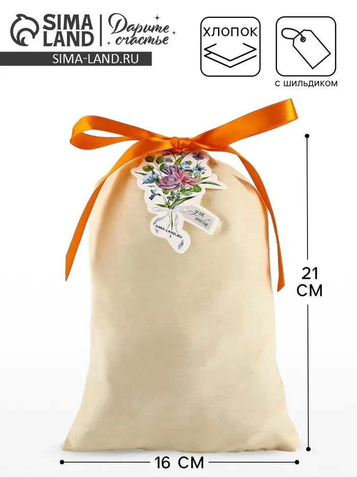 Мешочек подарочный из хлопка «С любовью для тебя», цветы, 16 х 24 см +/- 1.5 см — Характеристики
