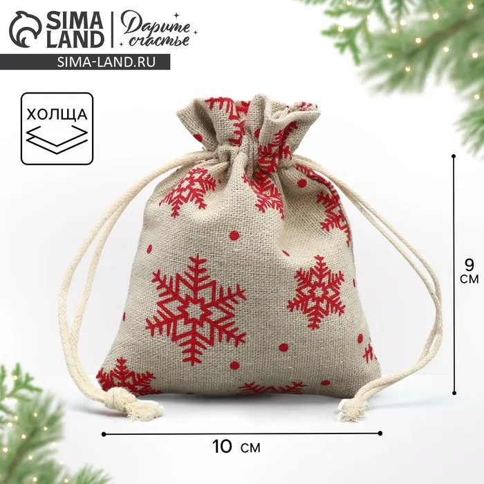Мешочек подарочный холща «Новогодние ожидания», снежинки, холща, 10 х 12 см +/- 1.5 см — Характеристики
