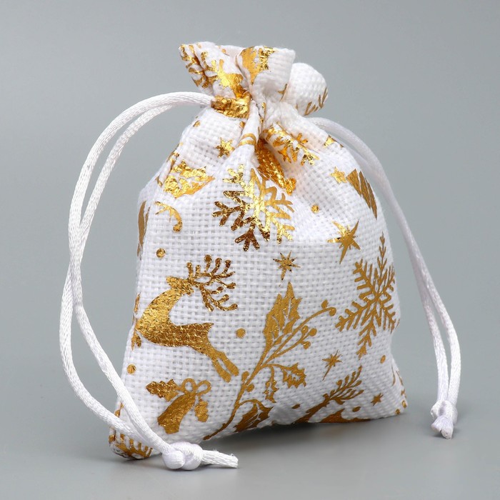 Мешочек подарочный холща «Золотая метель», тиснение, 10 х 12 см +/- 1.5 см