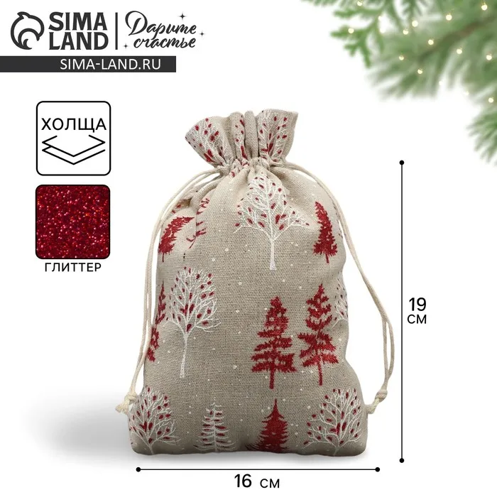 Мешочек подарочный «Новогодний лес», холща, 16 х 24 см +/- 1.5 см — Характеристики
