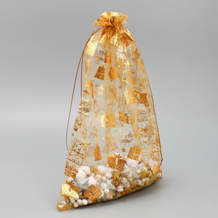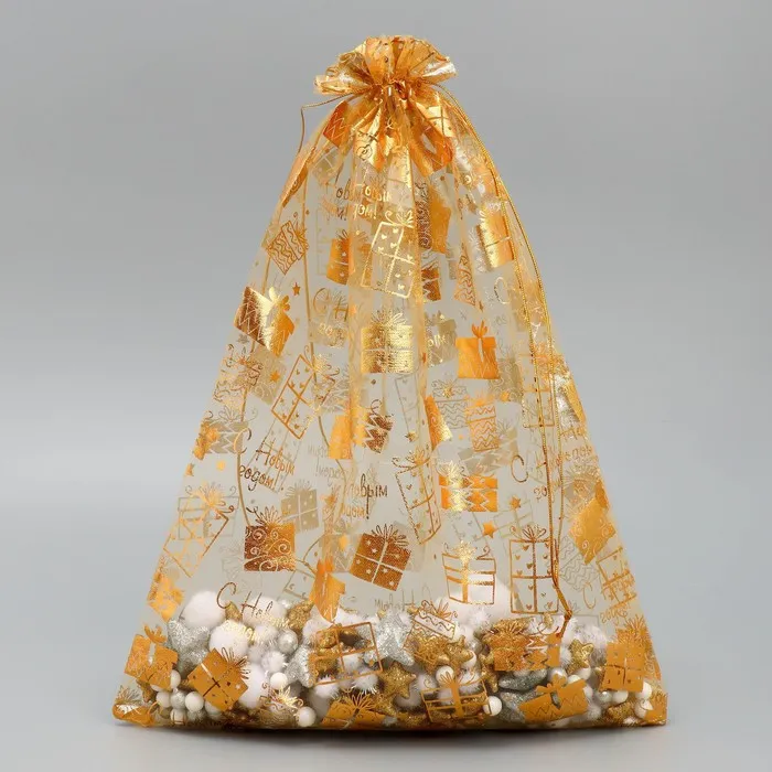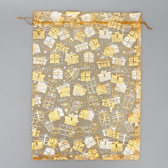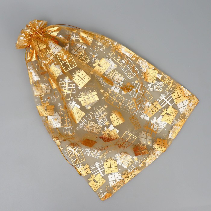 Мешочек подарочный новогодний органза «Золотые подарочки», 30 х 40 см +/- 1.5 см — Характеристики