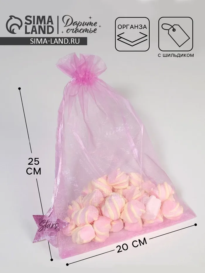 Мешочек подарочный органза фиолетовый «Звезды», с шильдиком, 20 х 30 см +/- 1.5 см — Характеристики