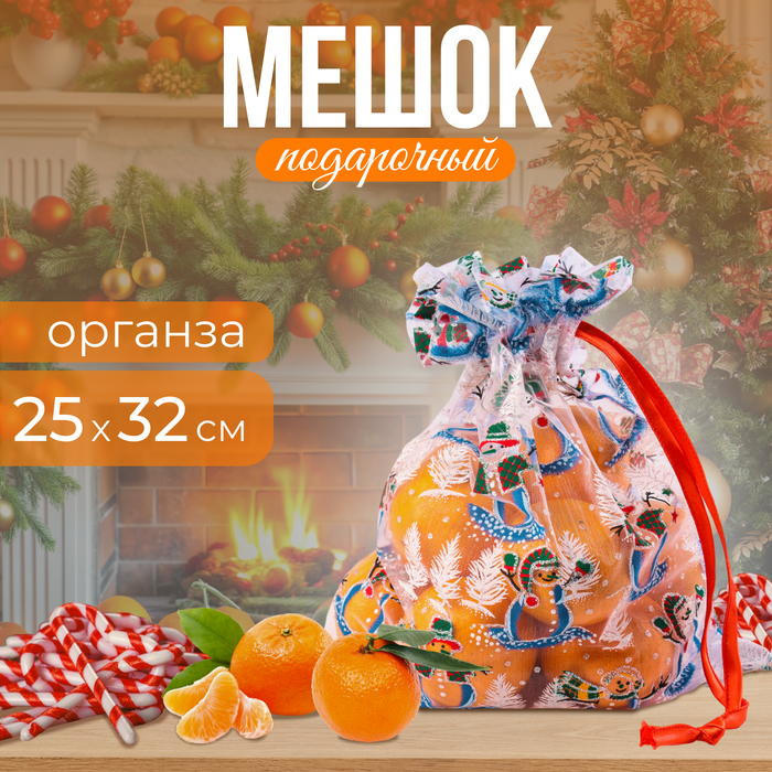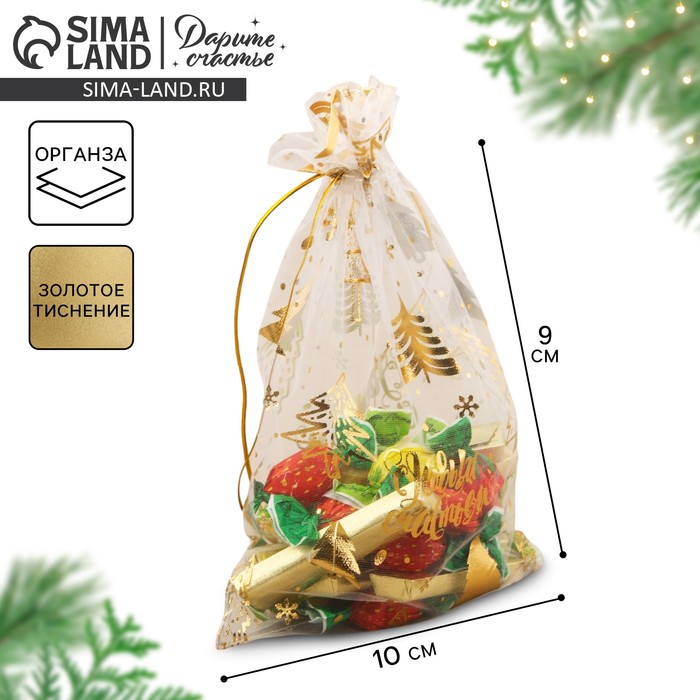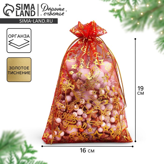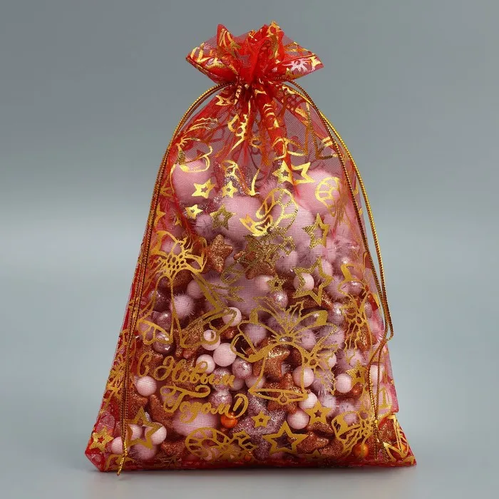 Мешочек подарочный органза «Новогодние игрушки», 16 х 24 см +/- 1.5 см — Характеристики