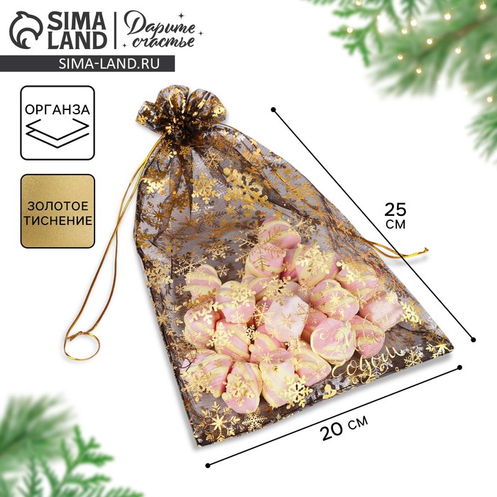 Мешочек подарочный органза «Новогодние снежинки», 20 х 30 см +/- 1.5 см — Характеристики