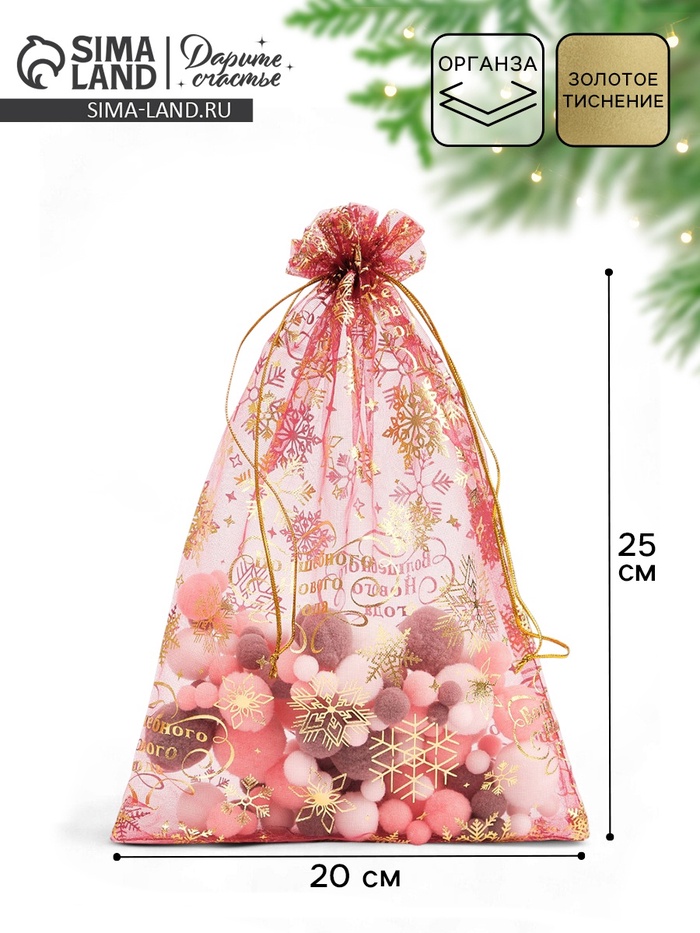Мешочек подарочный органза «Волшебного Нового года!», 20 х 30 см — Характеристики