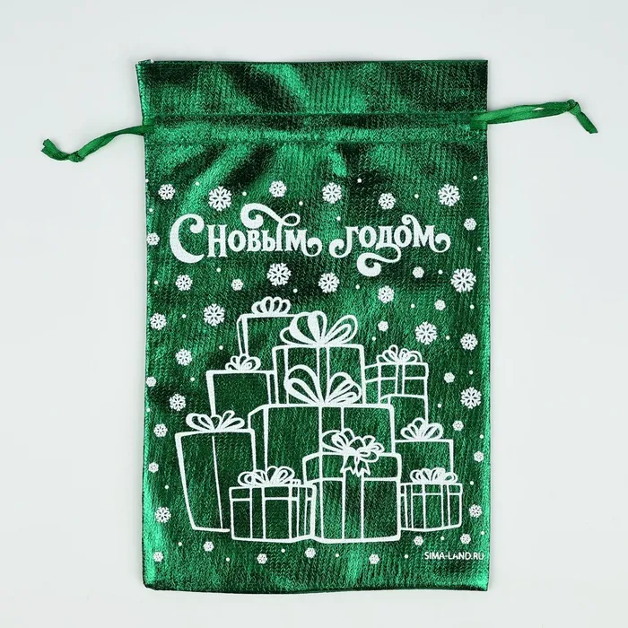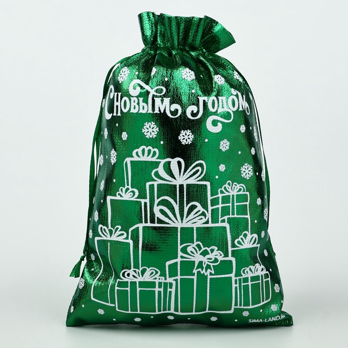 Мешочек подарочный парча «Новогодние подарки», зелёный, 16 х 24 см — Характеристики