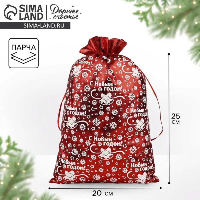 Мешочек подарочный парча «Снежинки», красный, 20 х 30 см — Характеристики